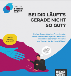 Seit September 2021 bieten dir ausgebildete Streetworker*innen in allen sieben bayerischen Bezirken ein offenes Ohr. Egal ob im persönlichen Gespräch, im Chat, per Telefon, via Social Network oder beim Gamen auf PC, PS4 und Switch: Dein*e Streetworker*in unterstützt dich, wenn du nicht mehr weiter weißt. Fachlich wird das Projekt von Fachkräften und Vertreter*innen aus unterschiedlichen […]